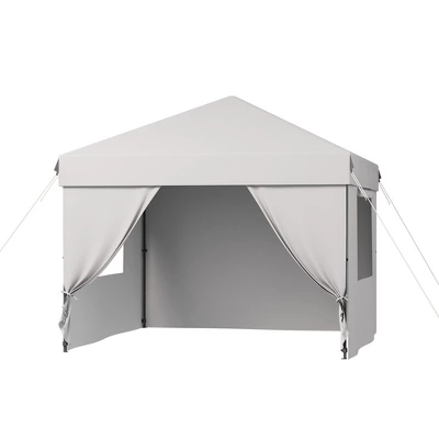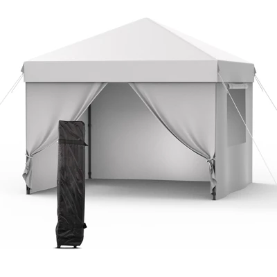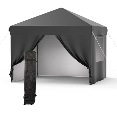 This 10×10 pop-up canopy tent offers quick and easy one-person setup, making it ideal for outdoor events, parties, and camping trips. Constructed with heavy-duty materials, this commercial-grade shelter provides reliable protection against sun and light rain. Featuring four removable sidewalls, it allows customizable coverage and enhanced privacy, ensuring comfort and versatility in any outdoor setting.