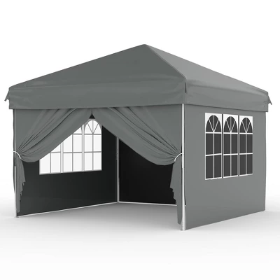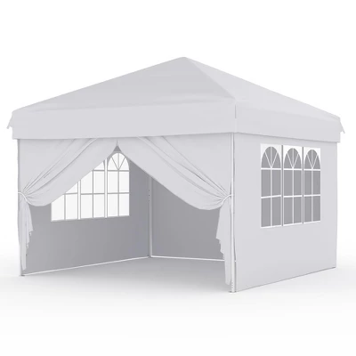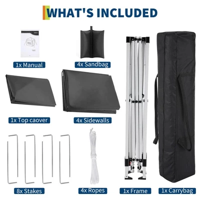 The 10’x10′ pop-up canopy tent offers quick and convenient setup. The no-pinch height adjusters allow for flexible leg height customization. It folds down easily into the included carry bag, making transportation and storage in your car trunk effortless.The canopy tent is ideal for a wide range of occasions. It is suitable for patio, backyard, garden, party, beach, outdoor sports, art event, camping, and more.Featuring a commercial-grade full truss structure with a robust cross-truss design, it is also equipped with 4 sandbags, wind ropes and spiral ground nails that can firmly secure the canopy tent on the ground.