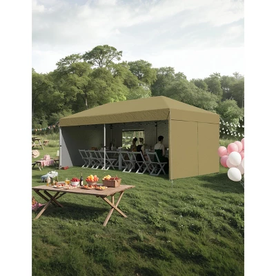 Designed for effortless transportation, this 10āx20ā canopy includes a compact wheeled carry bag for vehicle storage and mobility between events like festivals, camping trips, or beach outings. The collapsible frame fits standard SUVs and trucks. Crafted with 210D Oxford fabric and rust-proof metal trusses, the pop-up canopy delivers reliable UV protection and wind/rain resistance. The reinforced frame maintains structural integrity across seasons, shielding users from sun exposure while resisting fabric fraying or corrosion.