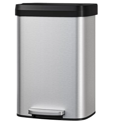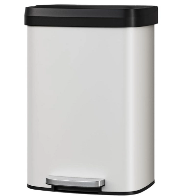 13 Gallon / 50 Liter Metal Trash Can With Lid, Large Garbage Can For Kitchen, Rustproof Step-on Kitchen Metal Trash Bin