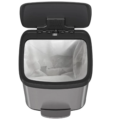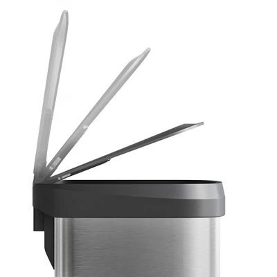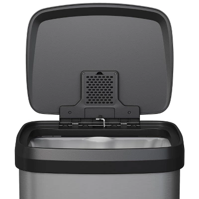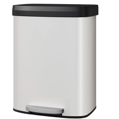 The powder coated metal garbage can for kitchen features a fingerprint-resistant finish that stays smudge-free and wipes clean with a soft cloth. An integrated liner rim hides bag edges for a seamless silhouette, while anti-slip rubber feet keep the bin stable on tile, hardwood, or low-pile carpet