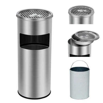Keep your indoor and outdoor spaces clean and organized with this versatile 4.5 gallon (17L) trash can. Featuring a durable stainless steel construction, it includes a removable inner bucket for easy waste disposal and cleaning. The integrated ashtray adds convenience for outdoor smoking areas. Equipped with a secure lid, this commercial-grade waste bin is perfect for patios, entrances, offices, and other high-traffic areas.