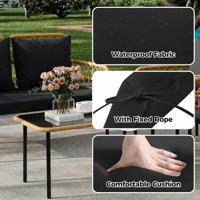 - ćAll-weather DurabilityćThis outdoor furniture set is made of weather-resistant rattan and rust-proof metal frame. Whether it is the hot summer sun or the continuous rainy season, it can remain in good condition without fading or cracking. It can be fixed in place even on windy days, without frequent moving in and out. The thickened rattan is tightly woven and not easy to deform. Even after long-term use, it remains as strong as new, making it an ideal choice for comfortable outdoor living.