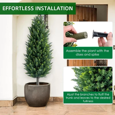 These outdoor artificial plants can maintain a lifelike, vibrant appearance in all seasons. Say goodbye to watering, pruning and other tedious plant care, and don’t worry about falling leaves. If any flowers fall off during the unpacking process, just easily re-secure them on the branch.