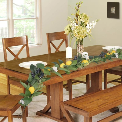 - This 6 FT artificial garland features a delightful mix of lemons, blueberries, greenery leaves, and white flowers, capturing the essence of spring and summer while bringing a refreshing holiday mood to any space.