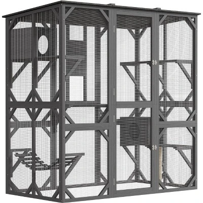 Cat patio use High-Quality Fir Wood Frame & anti-bite galvanized wire mesh ensure durability and safety. The transparent mesh allows cats to observe their surroundings while preventing escapes or predator threats.