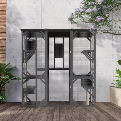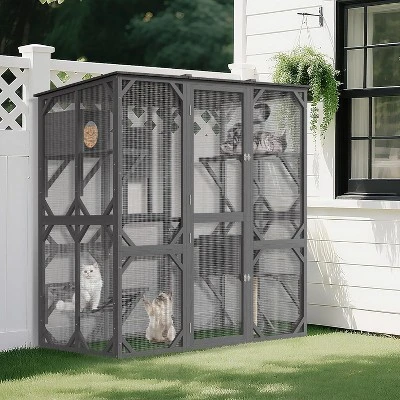 Cat patio use High-Quality Fir Wood Frame & anti-bite galvanized wire mesh ensure durability and safety. The transparent mesh allows cats to observe their surroundings while preventing escapes or predator threats.