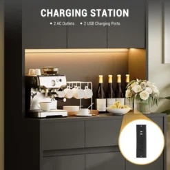 This kitchen cabinet features a built-in charging station equipped with 2 standard AC outlets and 2 USB ports, ensuring that your kitchen appliances and devices are always powered and ready to use. Enhance your cooking efficiency and enjoyment with convenient access to electricity for microwaves, coffee machines, and more.