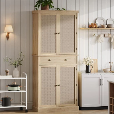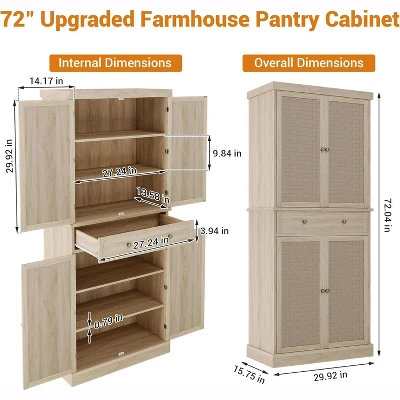 - ćHuge Storage Capacity with 4 Doors & Drawerć: This spacious pantry cabinet features 4 doors and a large drawer, providing ample space for food, dinnerware, kitchen appliances, and more. Perfect as a kitchen pantry or tall storage cabinet with doors to organize your kitchen, dining room, or living room.