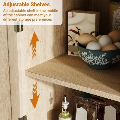Equipped with 4 adjustable shelves, this kitchen storage cabinet allows flexible height adjustments to accommodate items of all sizes. Ideal for kitchen cabinet storage and versatile pantry needs.
