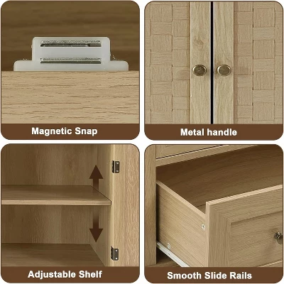 - ćVersatile Farmhouse Designć: Featuring beadboard doors, metal handles, and sleek lines, this farmhouse-style kitchen cabinet blends seamlessly into kitchens, bathrooms, studies, or dining rooms. Waterproof PVC woven strips add style and practicality.