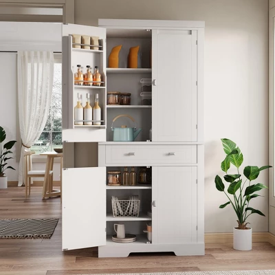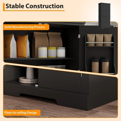- ćLarge Storage Capacityć Optimize kitchen workflow with this intelligently designed unit, featuring two roomy compartments, a sliding drawer, and six door racks. It organizes spice jars, baking sheets, and moreāreducing kitchen clutter while creating a streamlined workspace where every item has its dedicated place.