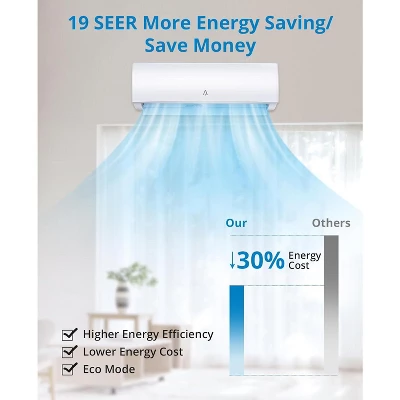 Equipped with a sturdy compressor and heat pump, this split AC unit ensures stable operation and provides powerful airflow even in extreme weather conditions. You can use this unit with confidence when the temperature soars to 131 degrees Fahrenheit in the hot summer and drops to below -13 degrees Fahrenheit in the winter. Be ready for any weather and enjoy ultimate comfort all year round