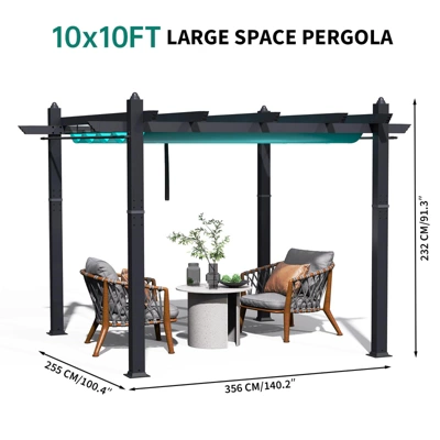 - Smart Climate Control: Customize your comfort with the pergola’s canopy that blocks UV rays while promoting airflow. The waterproof fabric adjusts effortlesslyāretract for full sunshine or extend for maximum shade protection during hot afternoons or light rain showers.
