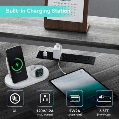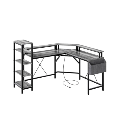 Lots of legroom. The storage shelves on the side can be used for printers and so on. 5 storage shelves help store files, stationery, and other items. The side bag allows you to store office supplies and documents. Super practical design! This computer desk has a Full Monitor Stand, This ergonomically designed desk elevates your line of sight, allowing you to maintain proper sitting posture and avoid the discomfort caused by poor sitting posture. The spacious desktop and thoughtful and comfortable design can help you better allocate your desktop space and say goodbye to a cluttered desktop.