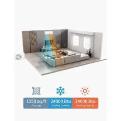 24000 Btu Mini Split AC Heating System, Wifi Enabled Mini Split Air Conditioner With 21 SEER2 Inverter,208-230V For Rooms Up To 1500 Sq. Ft