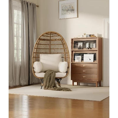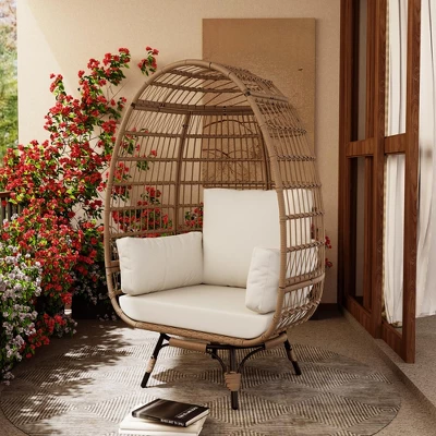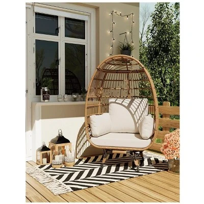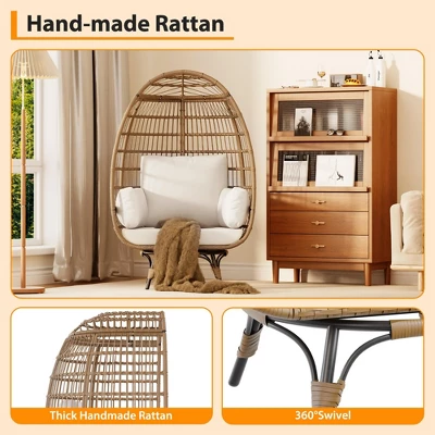 - Stylish Sophistication:āā Boasts a contemporary, bohemian-chic look, natural rattan finish, and spacious egg-shaped design, adding an elegant touch to any setting like patios, gardens, porches, or living rooms.