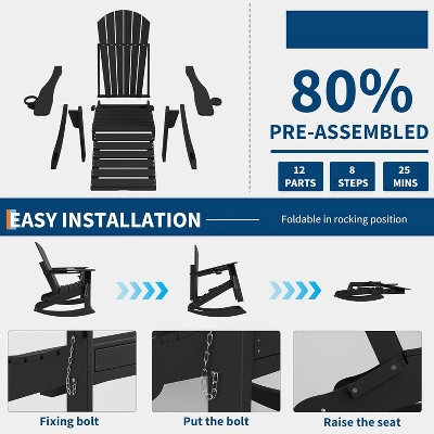 By removing the rocking base, you can turn it into a portable, foldable Adirondack rocking chair. It folds readily to save storage space and can be carried around with ease. With a wine glass holder and a cup holder on either side, you can relish your preferred drink as you unwind on your deck or patio.