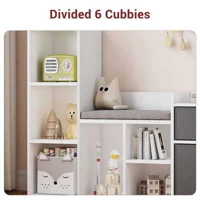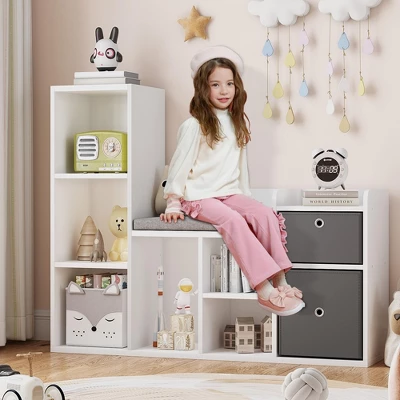 Perfect for any space, this kids’bookshelf functions as a bookcase in study rooms, a toy organizer in bedrooms, a storage cabinet in living rooms, or Montessori shelves and teacher organizers for classrooms. Ideal for nurseries, playrooms, kindergartens, reading nooks, home offices, balconies, and more. Combining style and function, this children’s bookcase features a soft seat cushion, 6 storage cubes, and 2 cloth drawers for organizing books, toys, and décor. Equipped with anti-tip wall anchors, it ensures maximum safety and stability in any room setting.