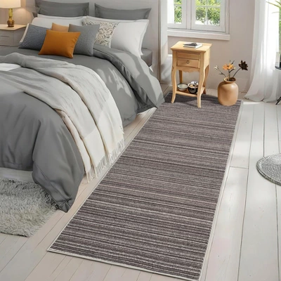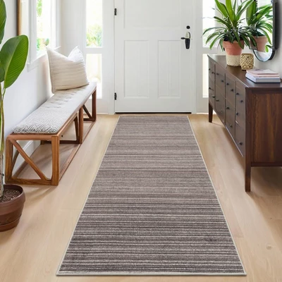 Washable Striped Carpet for Indoor and Outdoor Use, Ideal for Hallway, Laundry Room, Bedroom, Entryway, Dining Room, Office, and Farmhouse Style (Brown)