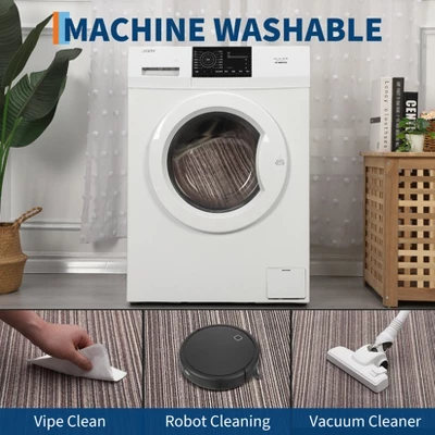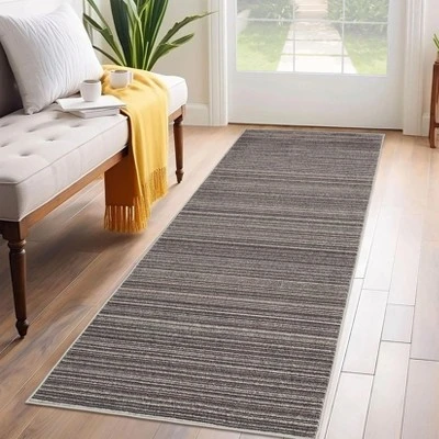 Timeless striped design in rich brownDurable for indoor and outdoor environmentsNon-slip backing for added safetyMachine washable for convenient maintenancePerfect For:Bringing warmth, functionality, and rustic charm to various areas throughout your home and workspace.