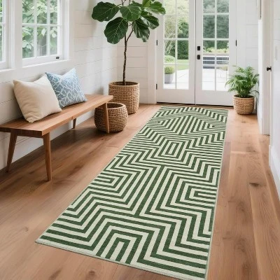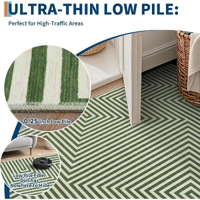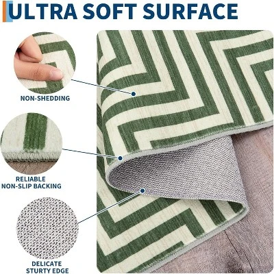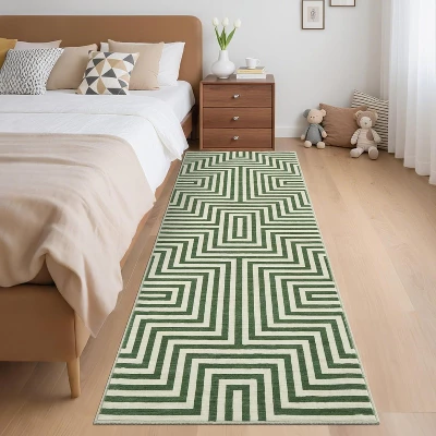 Revitalize your space with this modern geometric runner rug, featuring vibrant green stripes and a sleek mid-century design that adds a fresh, artistic touch to kitchens, hallways, or bedrooms. Crafted with a cloud-soft low-pile surface, it offers exceptional comfort underfoot while resisting dirt, stains, and daily wear. The rugās TPR non-slip backing ensures safety on indoor floors, making it ideal for households with children or elderly family members. Practical and versatile, it is machine washable for easy cleanup and folds compactly for storage or portability. Designed to fit seamlessly under doors and around furniture, this rug combines style, safety, and effortless maintenance for modern living.