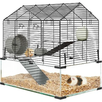 This rat cage has a tempered glass bottom that is fit for adding paper or wood chips to create a cozy, natural space for your hampster. The transparent glass bottom lets you watch your hamster’s actions in real-time.