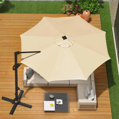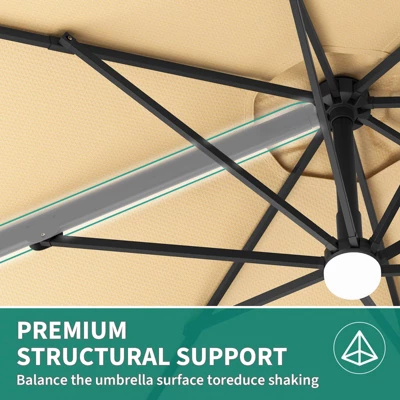 Cross Base Stability: Features a sturdy cross base design ensuring strong support and stability for your outdoor patio umbrella, perfect for any backyard or garden setting.
