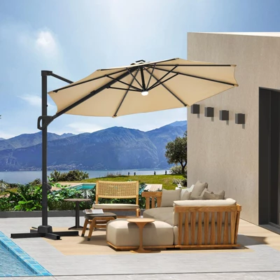 - WIND-RESISTANT STURDY + HIGH-END MATERIALS This heavy-duty cantilever umbrella can withstand winds up to 46 mph, and the reinforced aluminum frame and thick ribs ensure stability, while the regular umbrella can be folded. Ideal for coastal homes or windy yards where durability is important.