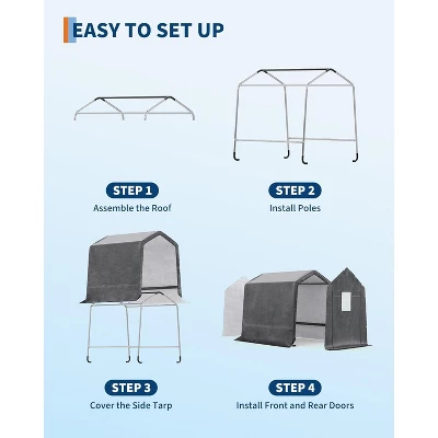 With pre-numbered parts and clear assembly instructions, these sheds & outdoor storage can be assembled one person in under an hour—No more frustrating screw assembly.The bike shed features mesh windows that ensure airflow while keeping out pesky insects; The outside storage sheds’ smooth zippers enable easy access and form a secure seal to keep pets out.This tool shed outdoor storage serves as both a bike shed and tool shed, perfectly stores bicycles, motorcycles, small trucks, as well as small lawnmowers, firewood, or gardening tools. These garden sheds & outdoor storage can keep your space environment neat and tidy.