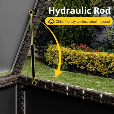 - ćUser-FriendlyćThe outdoor storage cabinet features an ergonomic front panel, enjoy effortless access with air springs and pneumatic rods that ensure smooth opening and closing for easy access to items, along with a soft-close mechanism that prevents finger injuries, making it safe and convenient for everyone. The heavy-duty hinge design allows for easy operation, even when the box is filled with items, making it user-friendly and convenient.