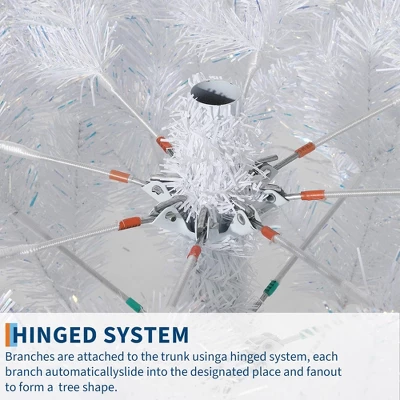 - Prelit with 150 LED Lights: Brighten your home or office with 150 energy-efficient LED lights. The artificial white Christmas tree ensures easy setup and a warm, cheerful glow throughout the holiday season.
