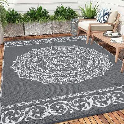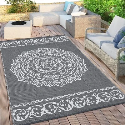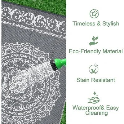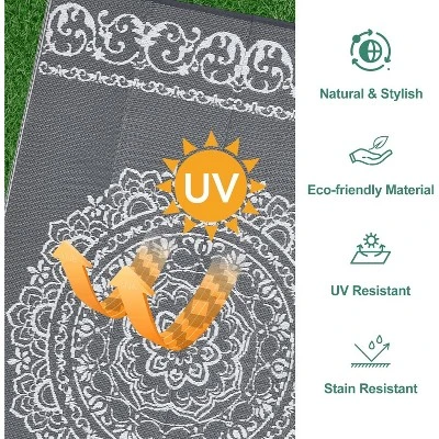This plastic straw rug is perfect for adding a splash of color to your outdoor or indoor event decor. Weather resistant plastic outdoor rug 9×12 is for patio, camper, backyard, deck, RV road trip, camping, picnic, porch, balcony, beach, park and garden.