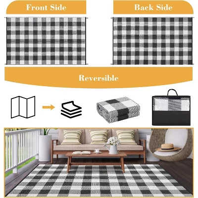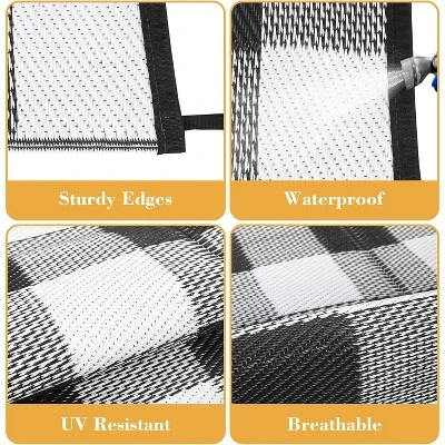 Crafted from premium plastic with sturdy woven edges, this UV resistant plaid rug is designed to withstand the elements. It is tear-resistant and waterproof, ensuring long-lasting use for all your outdoor adventures without worry